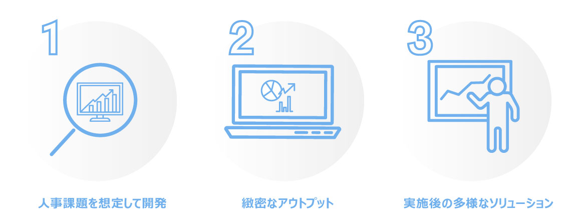 緻密に計算されたアウトプットによって、組織の現状把握と課題の整理が可能となり、人事施策のヒントに繋がっています。