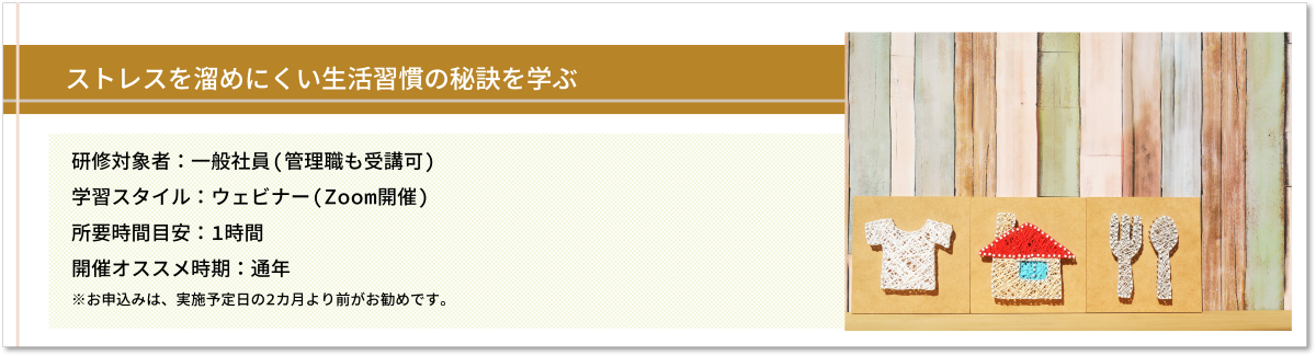健康の土台を整え、ストレスへの防御力を高める「生活習慣セミナー」